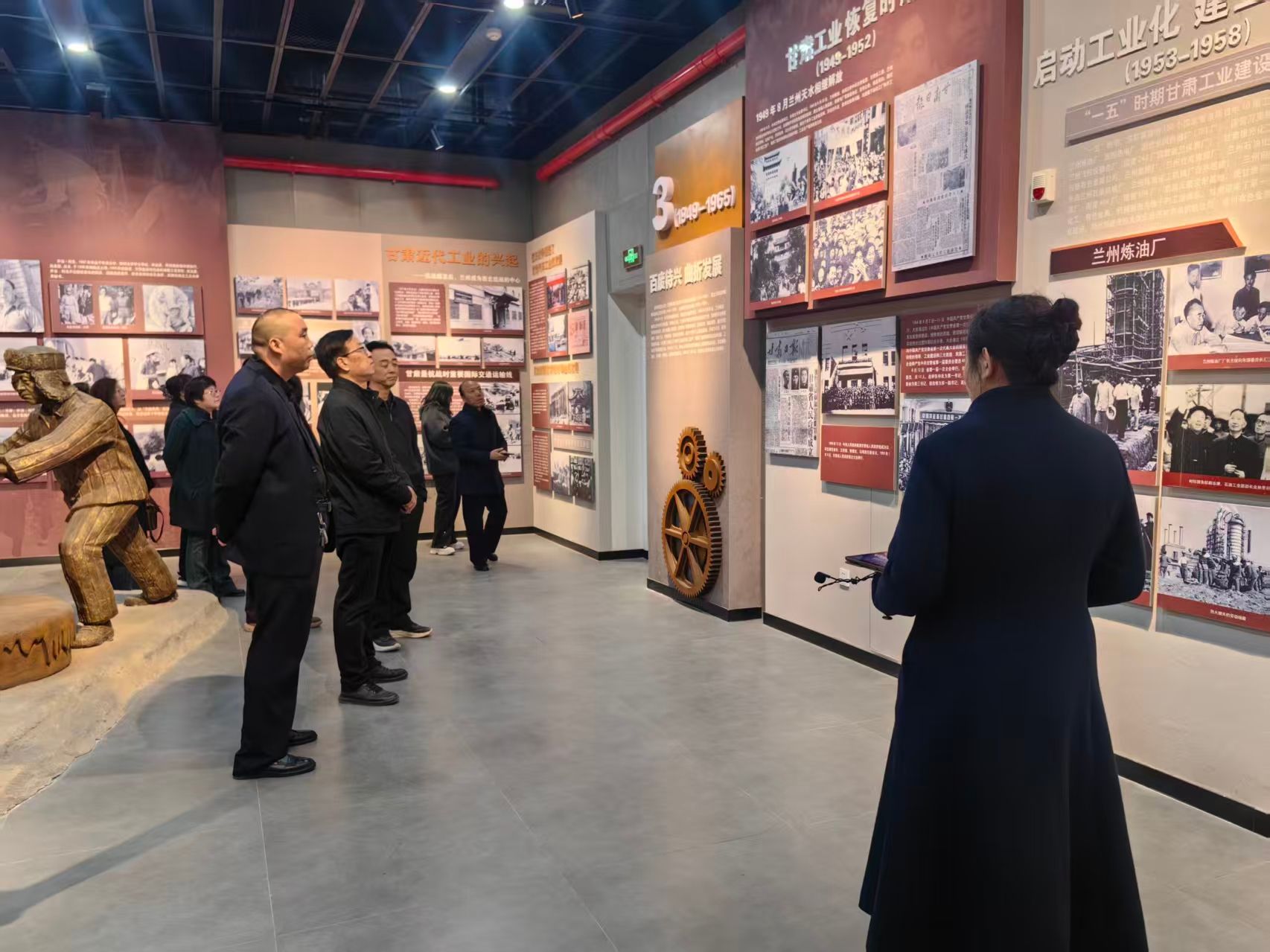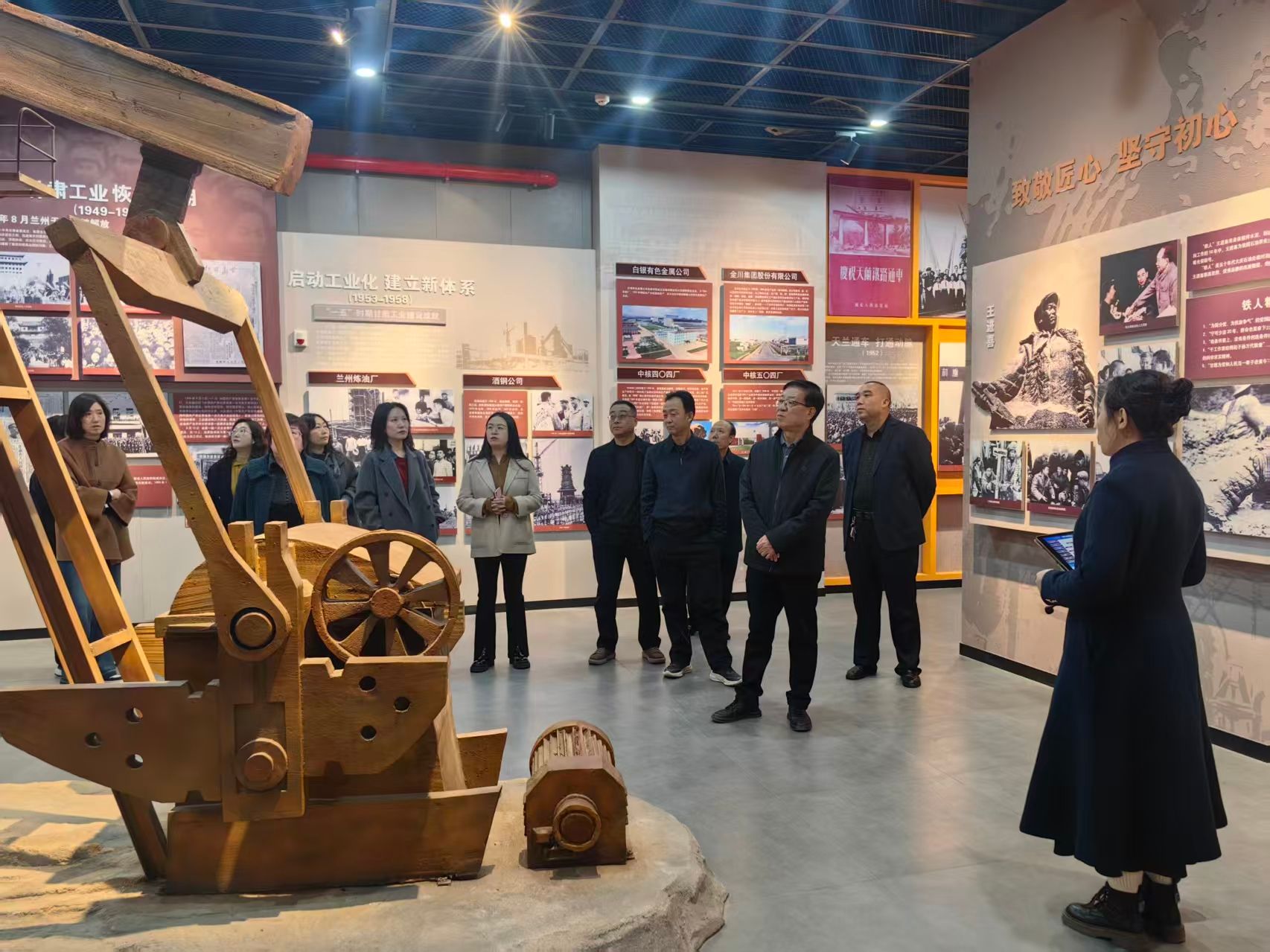 活动期间,博物馆专业讲解员全程引导,详细介绍了馆内藏品、工业发展历程与三线建设精神、工匠精神的丰富内涵。参观人员依次走进各主题展区,通过历史实物、图文资料、场景复原等,近距离感受甘肃机械工业从艰苦创业到创新发展的辉煌足迹,深刻体会老一辈建设者忠诚担当、攻坚克难、无私奉献的崇高精神。大家认真聆听、驻足交流、细致观摩,在沉浸式体验中接受了一场生动的历史教育与精神洗礼。