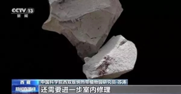 中国科学院西双版纳热带植物园研究员 苏涛:这是鱼的鳍条,现在看有一些骨头露出来了,还需要进一步室内修理。
