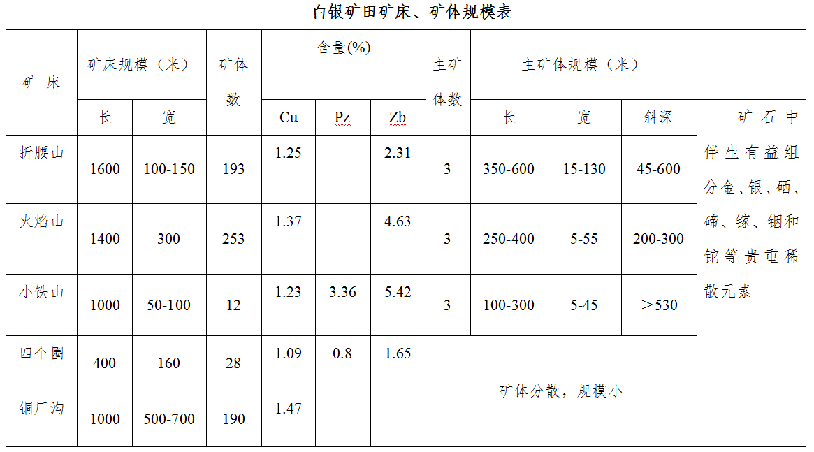 白银铜多金属矿位于中国甘肃白银市东北15km处,由古代采炼金银所设的采矿机构白银厂而得名。据民间传说白银矿区开采始于汉朝,有文字记载是明朝洪武年间(公元1368年),距今已有六百多年历史。建国后,国家在此建设了以铜矿采、选、冶相配套的有色金属联合企业,使白银成为我国第一个闻名遐迩的“铜城”。