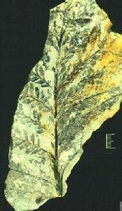 形态特征:蕨叶,单羽状,可能原为两次羽状分裂。轴甚坚强,宽约3 mm,上具不规则的粗的皱纹。羽片,似为披针形,最宽处为9~10 cm;小羽片,排列紧挤,互生至对生,基部最宽处达2 cm,略相毗连,并且几乎保存同样宽度伸延到前部的2/3 处,然后突然狭细,顶端钝或微弯成镰刀形。小羽片,一般长5~6 cm,自顶端逐渐变小;侧边全缘,有时作极微的波浪形;肌理似厚而为革质状,表皮微现褶皱。中脉,较粗,以一宽角自轴伸出,直,几乎直达小羽片顶端。侧脉甚细,以锐角自中脉伸出,弯曲甚强,普遍作三次分叉;基部有邻脉直接自轴伸出,分叉数次,其弯曲度更强(叶为二次羽状复叶。主轴较粗,宽约2 mm。末级羽轴较细,宽约1 mm,有的可见横纹。末次羽片对生,相互叠覆,披针形,长约10 cm,宽约2.5 cm,与主轴成60°~80°角。小羽片互生至对生,相互紧挤,有的微叠覆,椭圆形至菱形,长约1.5 cm,宽约0.7 cm,顶端尖或钝尖,基部楔形并沿羽轴下延至下一小羽片,全缘。中脉以40°~50°角从羽轴伸出,基部微下延;侧脉与中脉约成15°角,分叉1~3 次。