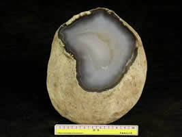 (b)发育成浑圆状外形的非晶态玛瑙(SiO2)