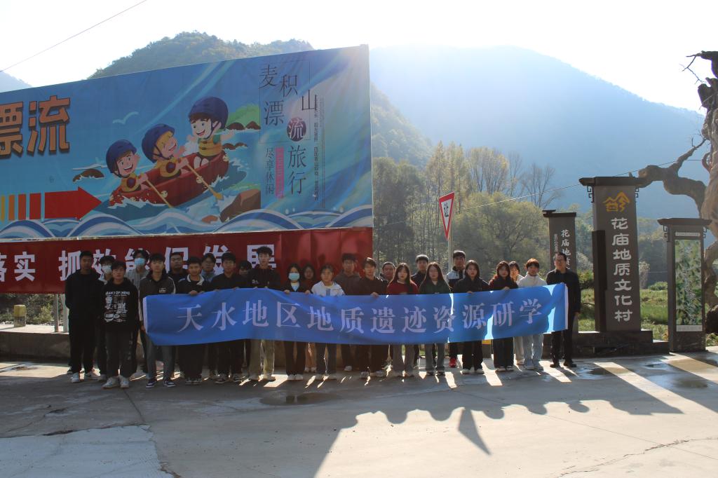 10月27日,地质博物馆组织地质、水文、钻探、工艺、酒管、化工、环测等多个专业共34名同学到天水市麦积区党川镇开展地质遗迹资源研学活动。